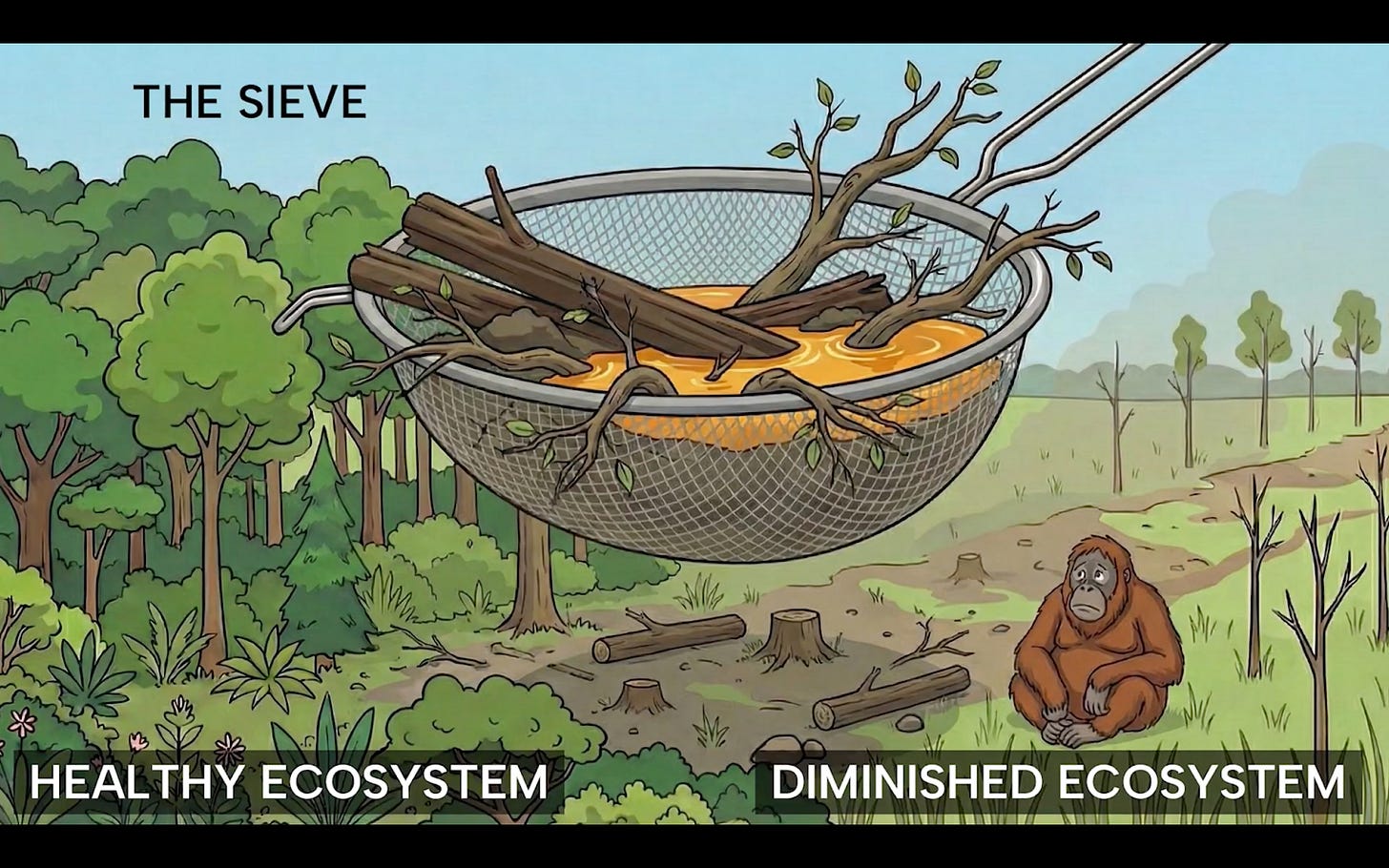 Debt also acts like a sieve. Credit creation immediately converts non-human stocks and flows into human-directed throughput. A loan becomes demand: for electricity, fuel, timber, fertilizer, or fish. Other species never receive claims, benefits, or representation in that transaction.